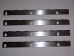 Cutting knives for cross-cutting (saw tooth) or for perforating with varying tooth placement, made e.g. as hard chrome plating, TIN coating or our premium quality special FHM-S1 steel.